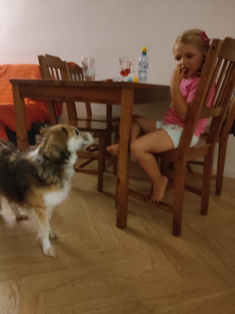 Myślę że u siebie Apka dostaje ludzkie smaczki z lodówki bo bardzo mnie pilnuje jak zaglądam do lodówki. Tak samo kiedy słyszy że coś jemy to też zjawia się z minką nie pozostawiającą wątpliwości „o co kaman” 😆